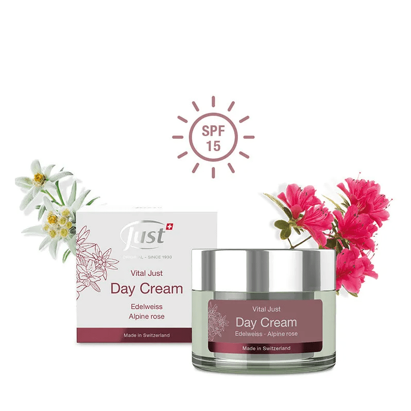 VITAL JUST päevakreem pakub nahale igapäevast kaitset, niisutust ja vananemisvastast hooldust. Kreem aitab aeglustada naha vananemisprotsesse ning kaitseb seda väliste kahjulike tegurite eest, muutes naha pringiks, säravaks ja tervemaks.